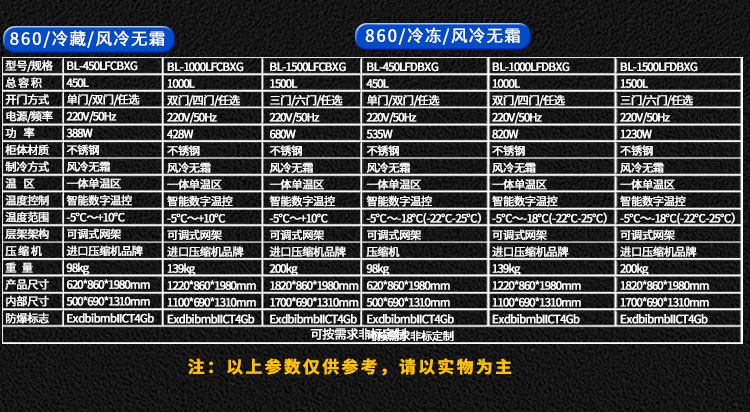 不銹鋼防腐防爆冰箱BL-850LFDBXG-760冷凍風冷無霜