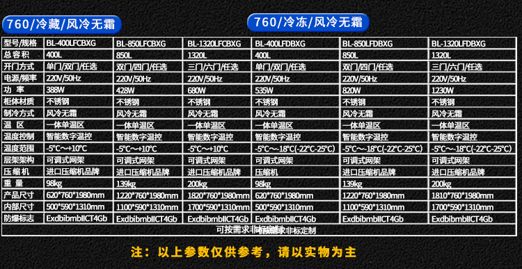 不銹鋼防腐防爆冰箱BL-400LFDBXG-760冷凍風(fēng)冷無霜