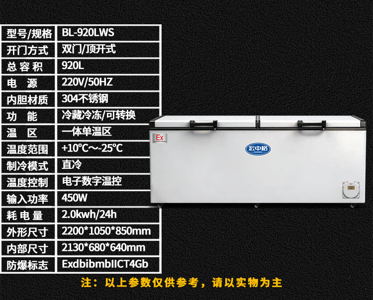 臥式不銹鋼防爆冰箱BL-520LWS
