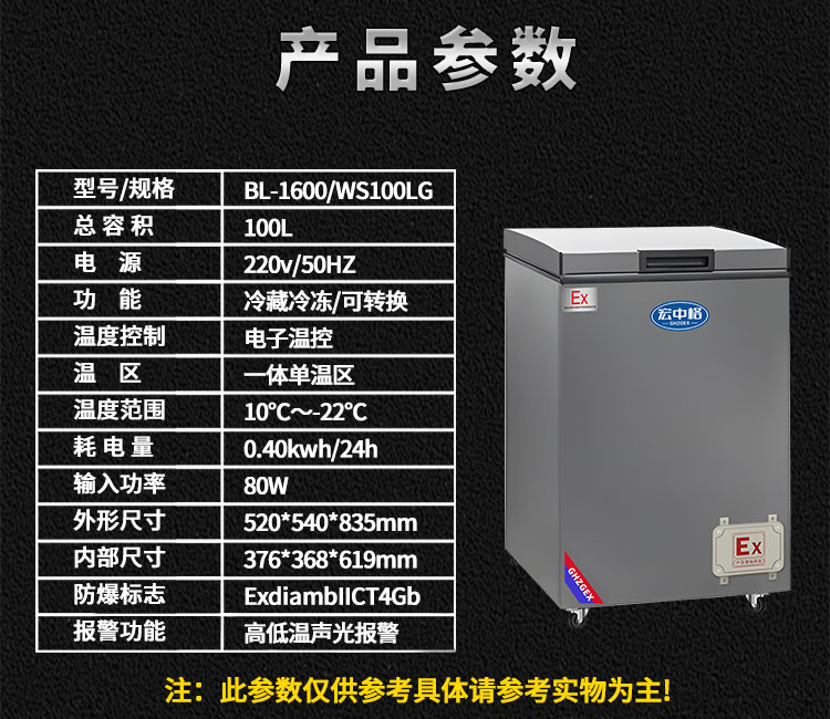 臥式防爆冰柜BL-WS300LG